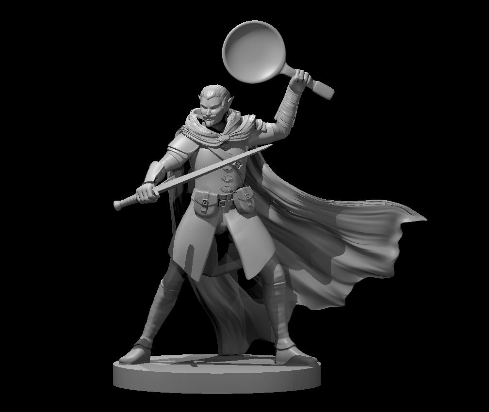 #1329 Elf Male Two Sword Ranger 4 but with a frying pan and longsword